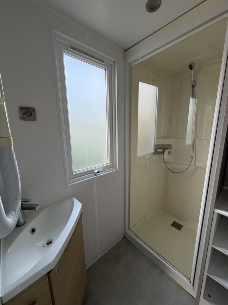 • Salle d’eau douche, lavabo, WC séparé. Climatisation réversible. Salon de jardin. (hors linge de maison)